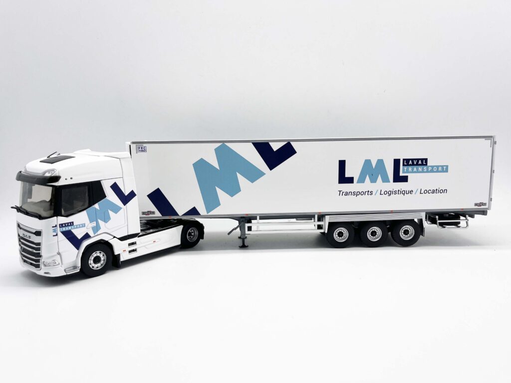 Maquette de camion personnalisée. Modèle de collection détaillé avec couleurs et logos. Modèle réduit à l’échelle 1/43ème