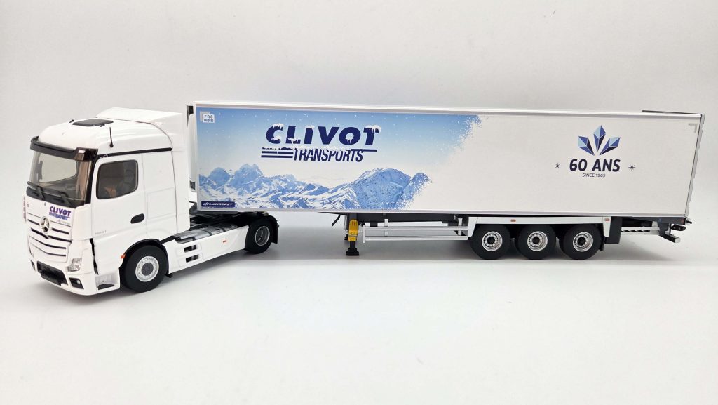 Cette miniature de collection en métal et plastique reprend le MERCEDES ACTROS 5 et la semi-remorque frigorifique LAMBERET.