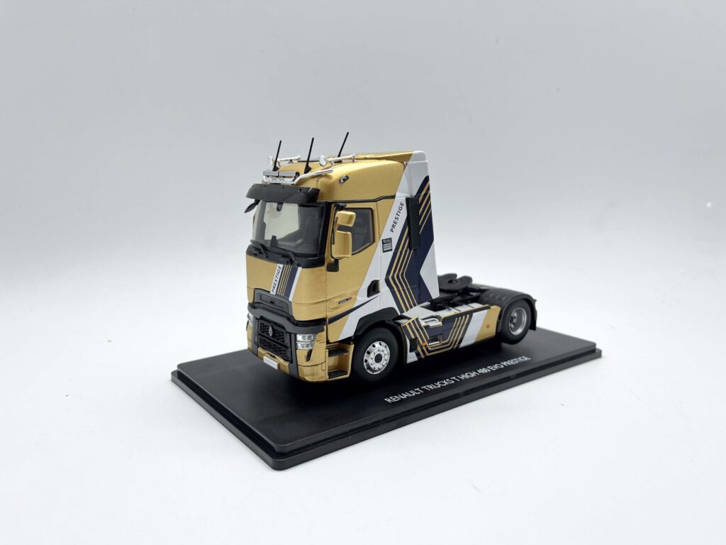 Maquette de camion à l’échelle 1/43 du tracteur Renault T HIGH 480 personnalisée aux couleurs officielles de Renault.